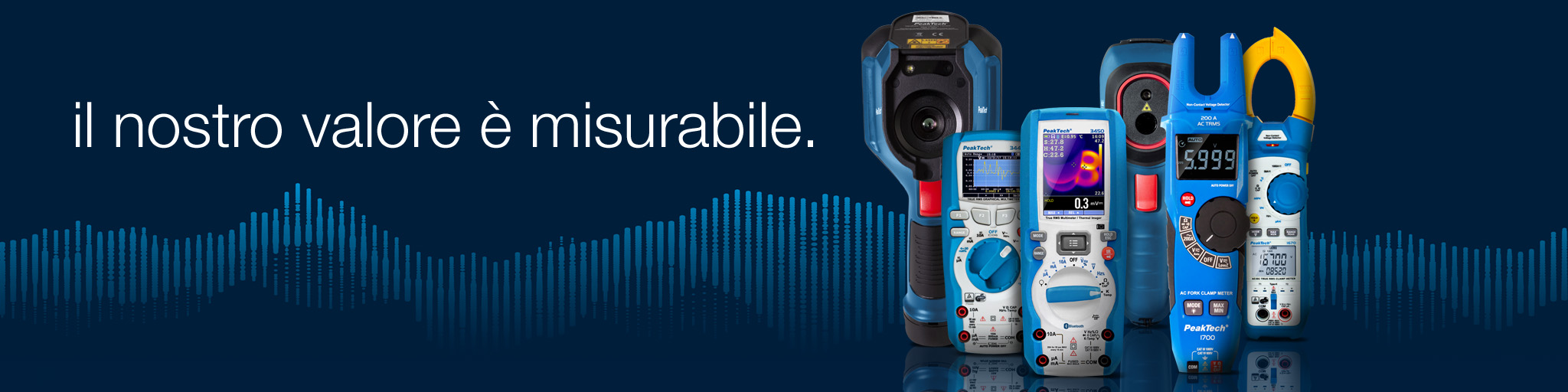 Il nostro marchio PeakTech è sinonimo di innovazione e alta qualità con un eccellente rapporto prezzo/prestazioni. Sviluppiamo prodotti innovativi ed emozionanti dal design moderno per i nostri clienti. Allo stesso tempo, i nostri prodotti devono anche essere accessibili per l'utente hobbista, l'artigiano, l'hobbista o per l'uso nell'insegnamento e nelle lezioni scolastiche. Con la nostra vasta gamma di prodotti di circa 400 modelli, ci consideriamo un fornitore completo di tecnologia di misurazione elettronica per laboratori, università e scuole, così come per l'industria e l'artigianato. Come azienda tedesca, rispettiamo tutte le norme, le leggi e le direttive UE, il che garantisce a voi come cliente una sicurezza speciale nell'applicazione e nell'elaborazione.